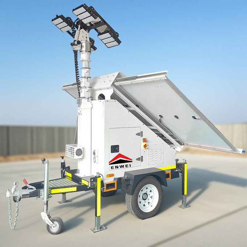 दूरस्थ क्षेत्र प्रकाश व्यवस्था के लिए बहुक्रियाशील और सुरक्षा सौर संचालित फ्लडलाइट प्रकाश ट्रेलर